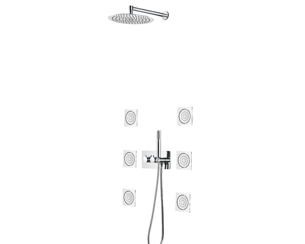 Stainless steel top shower Brass shower arm Brass body jets 3-function thermostatic mixer Brass shower holder ABS hand shower Stainless steel shower hose